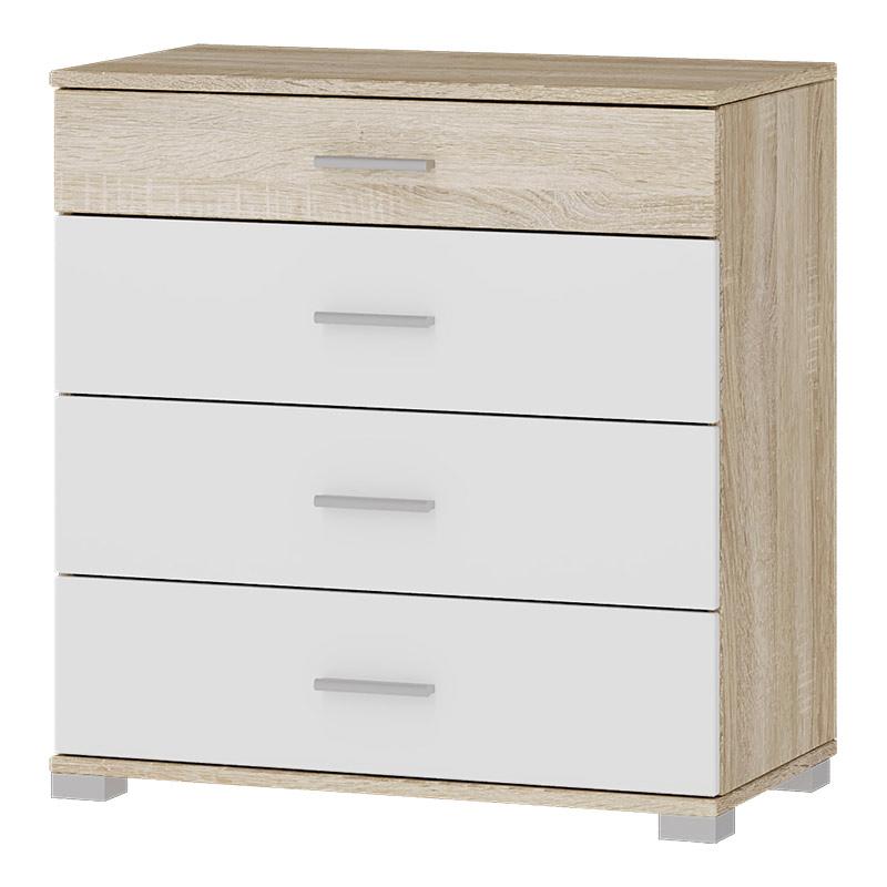 Комод EVEREST Briz K-5 — це компактний і практичний елемент меблів для спальні, передпокою або вітальні. Модель поєднує сучасний дизайн, зручну систему зберігання та універсальне колірне рішення дуб сонома + білий, яке легко вписується в сучасні інтер’єри.