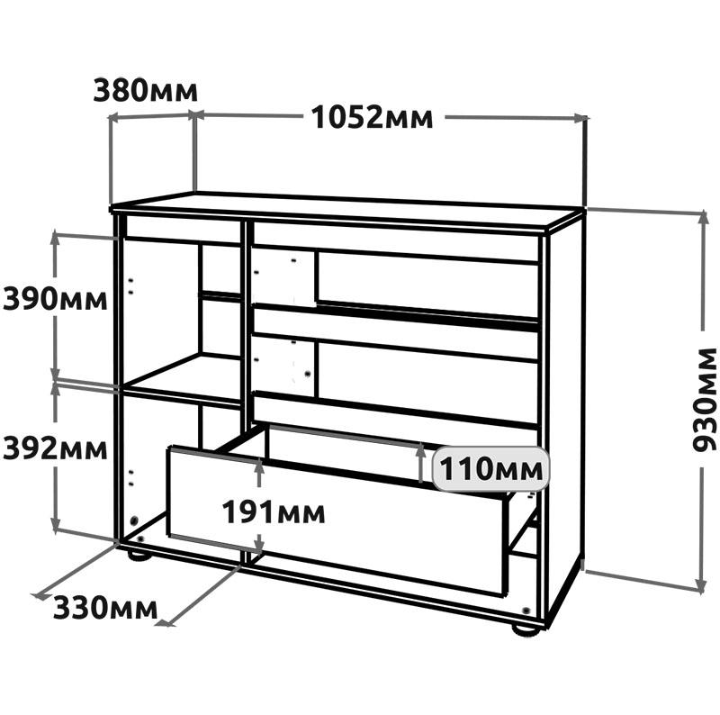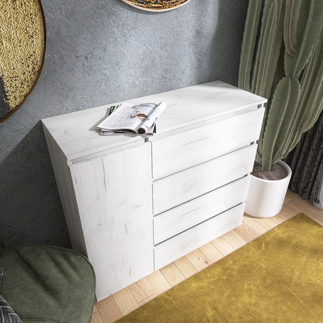 Комод EVEREST Лайт КЛ-3 4 ящики і дверця 1050x377x930 мм Крафт Білий