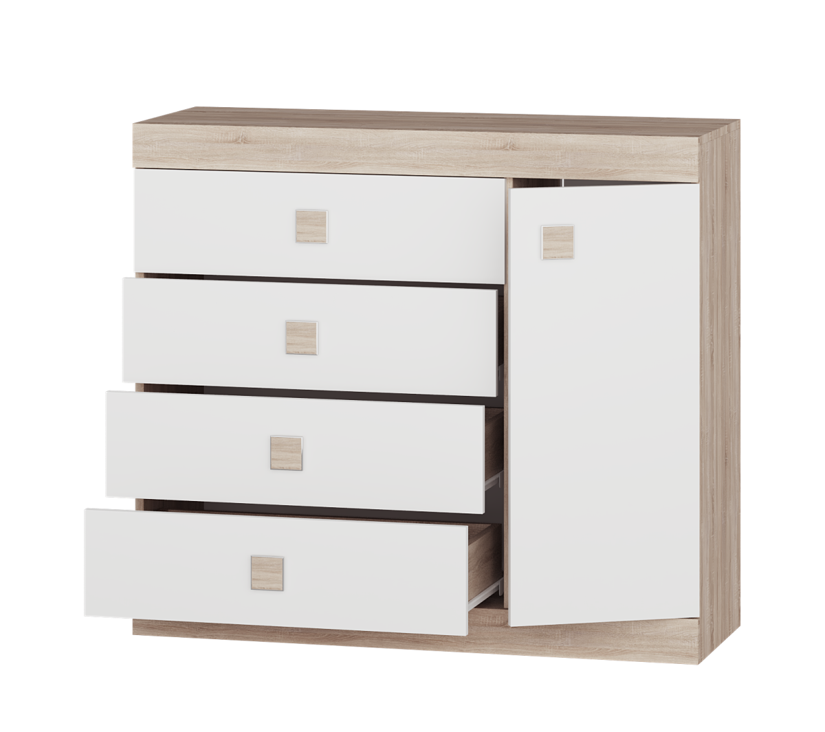 Комод 5 із колекції Соната – це компактне, але містке рішення, яке легко впишеться в будь-який інтер'єр. Завдяки простому та мінімалістичному дизайну він органічно доповнить спальню, вітальню або передпокій, забезпечуючи додаткове місце для зберігання речей.