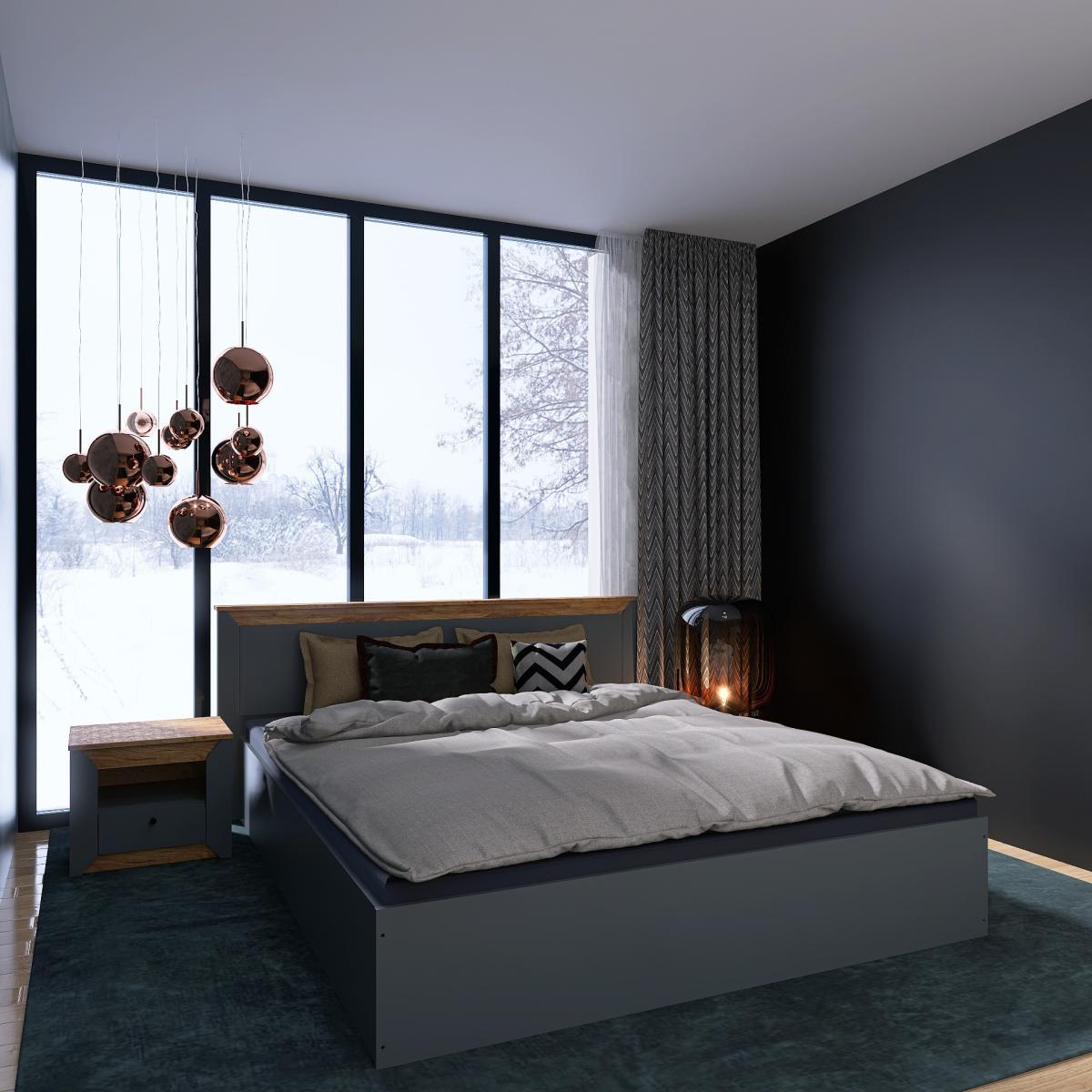 Ліжко двоспальне EVEREST Нордік 1600 з ламельною основою Дуб крафт золотий + Графіт