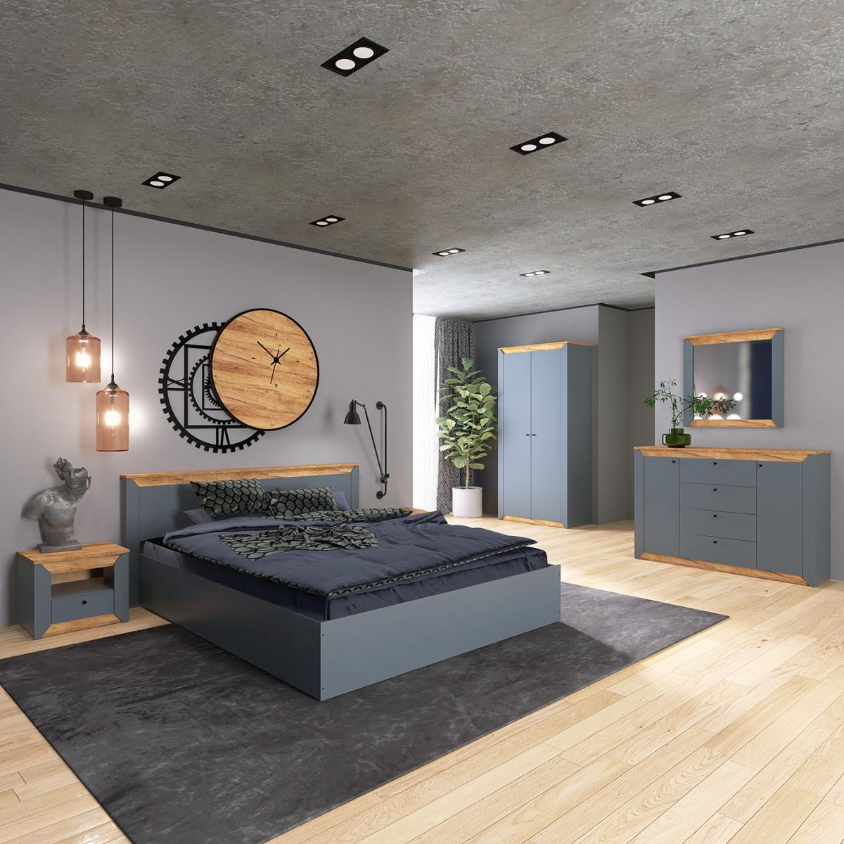 Ліжко двоспальне EVEREST Нордік 1600 з підйомним механізмом і ламельною основою Дуб крафт золотий + Графіт
