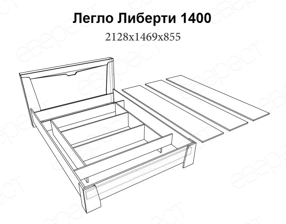 Прекрасна сучасна двоспальна ліжко Ліберті, зі спальным місцем 1400х2000мм - має відмінні експлуатаційні характеристики. В якості основи використовується щит з посиленими ребрами жорсткості.