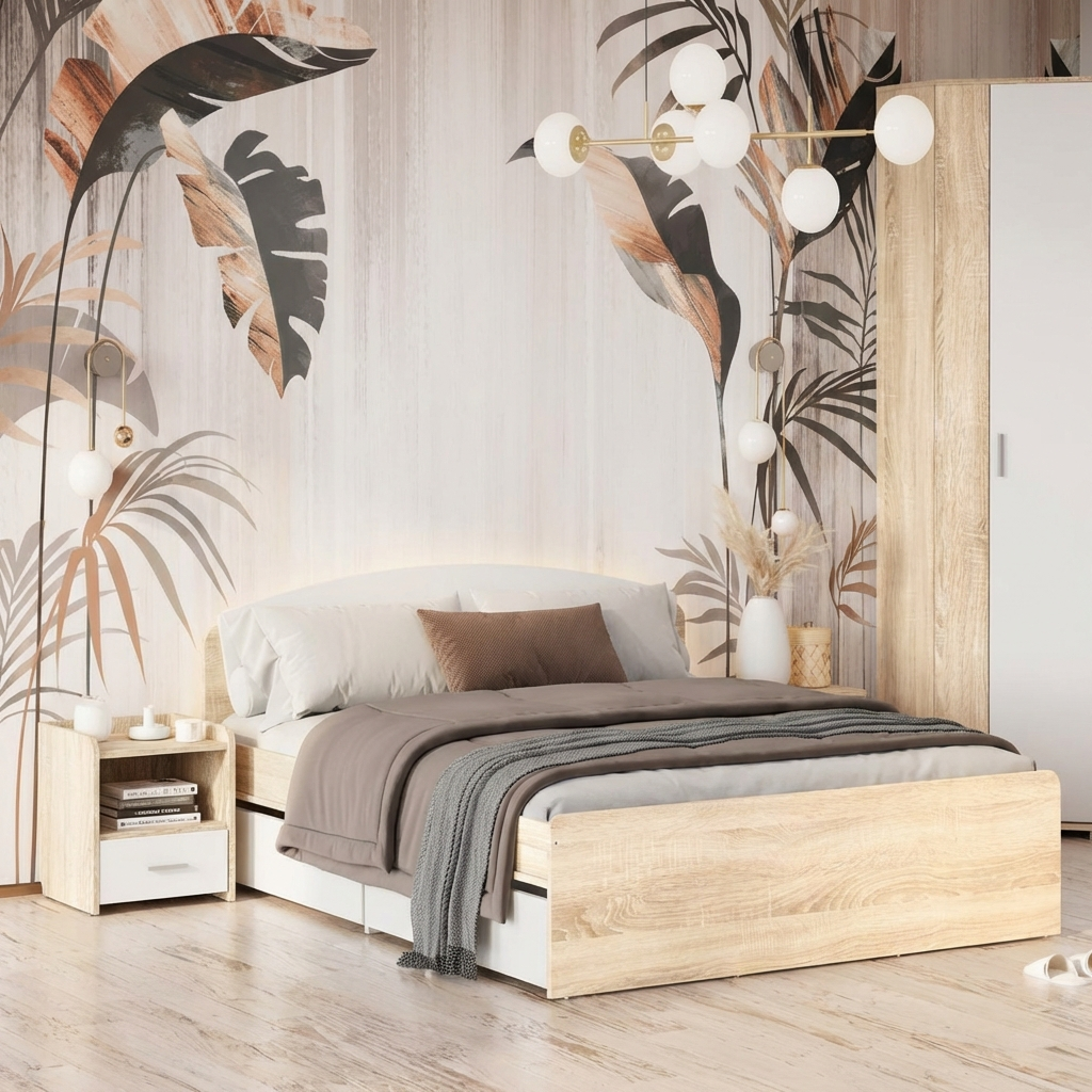 Ліжко EVEREST Briz Astoria — це універсальний і елегантний елемент меблів, який гармонійно поєднує функціональність із мінімалістичним дизайном. Ідеально підходить для організації спальні, створюючи комфортне та затишне місце для сну та відпочинку. Колірна гамма — Сонома для узголів’я та Білий для корпусу — створює легкий, повітряний вигляд, вписуючись у скандинавський, сучасний або еклектичний інтер’єр, додаючи нотку тепла та свіжості.