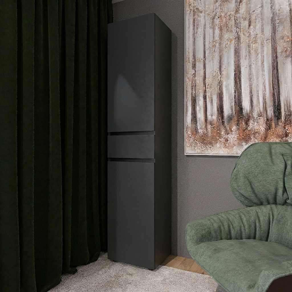 Лайт пенал ПЛ-1 Графіт – це сучасний і зручний елемент меблів, який ідеально впишеться в інтер'єр спальні, вітальні, дитячої кімнати або офісу. Завдяки продуманій конструкції та універсальному дизайну він допомагає ефективно організувати простір, забезпечуючи зручне зберігання речей.