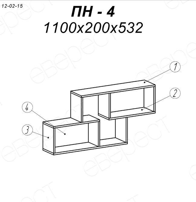 ПН-4 EVEREST 1100x20x530 мм Венге темний