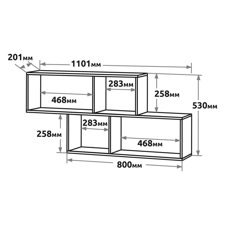Конструкція складається з кількох відкритих секцій різного розміру, що дозволяє зручно організувати простір і створювати стильні композиції на стіні.