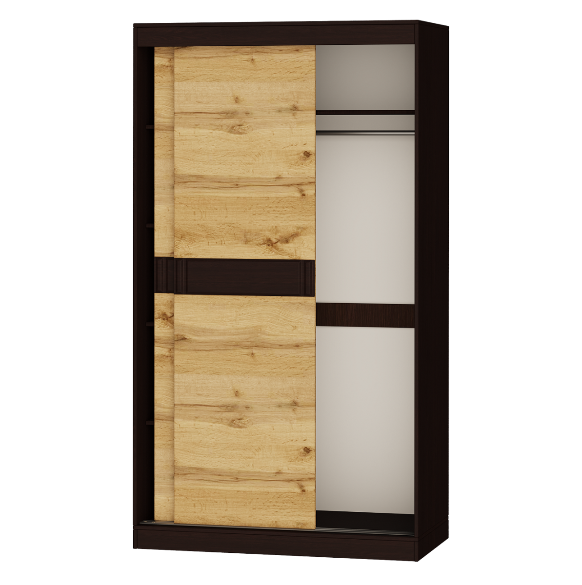 Шафа-купе 1200 мм із колекції Соната – це зручне та стильне рішення для зберігання одягу й аксесуарів. Вона ідеально поєднує практичність і класичний дизайн, гармонійно вписуючись у будь-який інтер’єр.