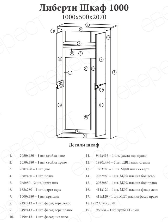 Шафу 1000 з колекції Ліберті - відмінний варіант для облаштування прихожої, дитячої, спальні і навіть вітальні. Відрізняється великою місткістю та продуманою надійною конструкцією.