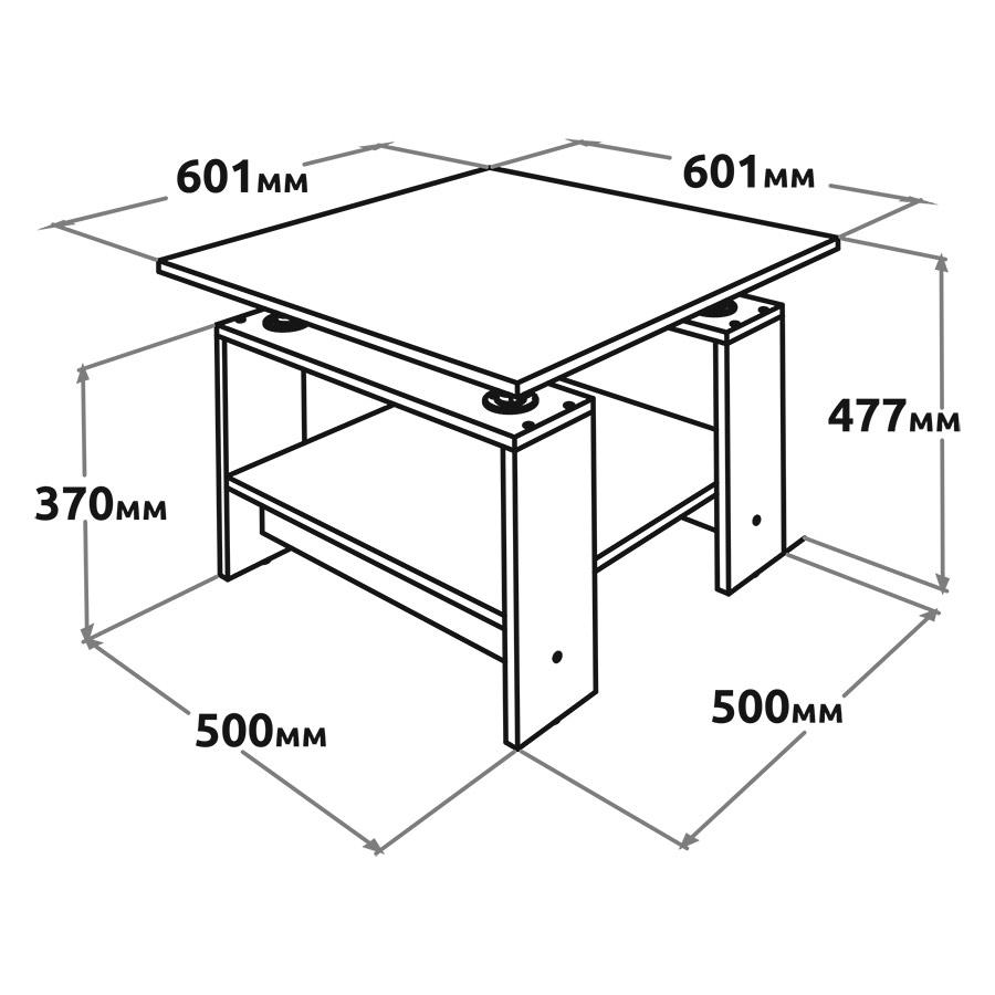 Конструкція столу передбачає основну стільницю та додаткову нижню полицю, що дозволяє зручно розміщувати журнали, пульти, книги та декоративні елементи.