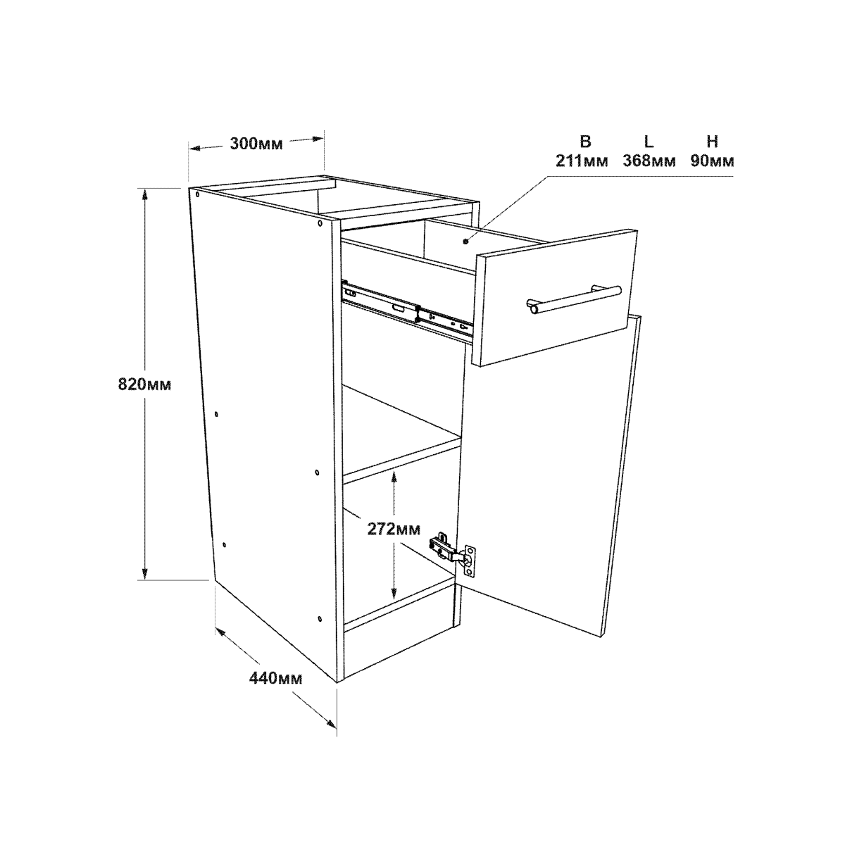 Тип: тумба з шухлядою і дверцятами