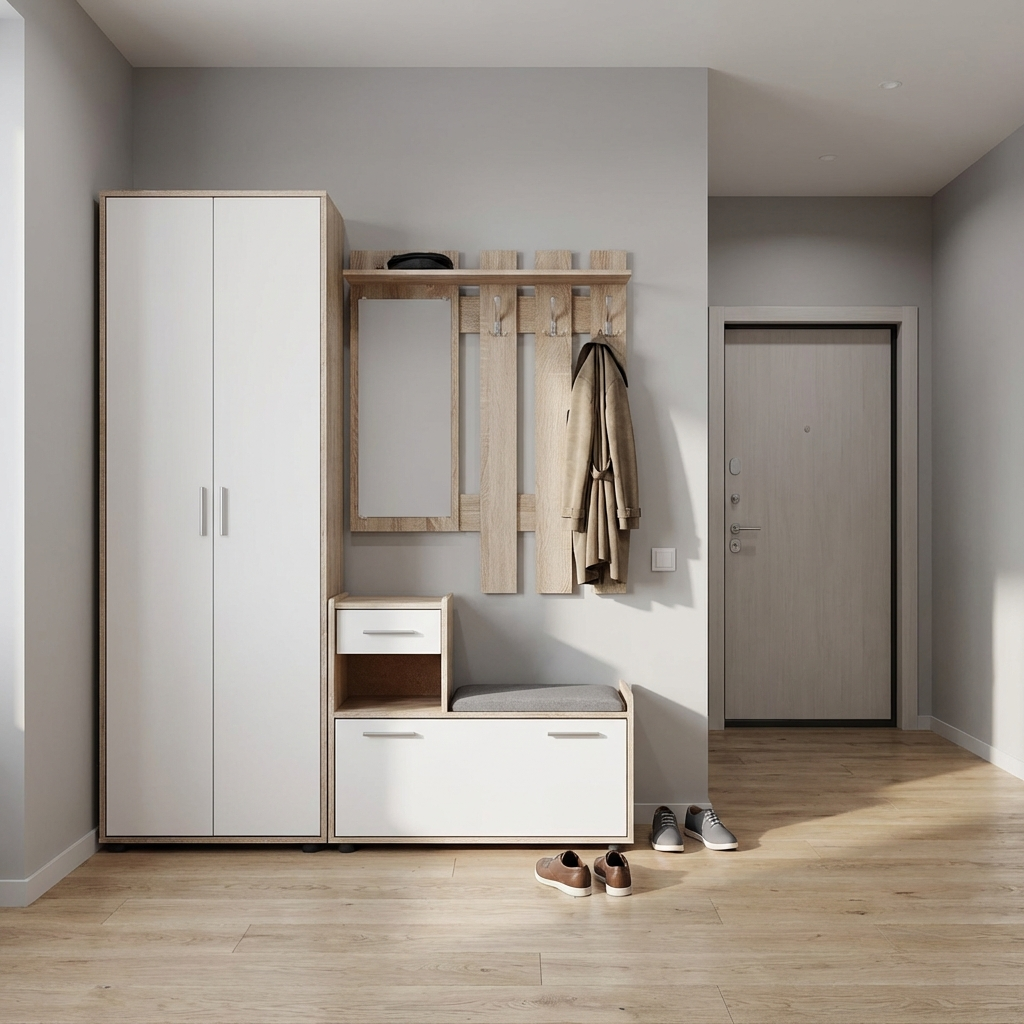 Вішалка настінна EVEREST Тандем 601×385×2100 мм Сонома — функціональне та компактне рішення для передпокою, коридору або гардеробної зони. Модель поєднує практичну конструкцію, сучасний дизайн і продуману ергономіку, що дозволяє зручно організувати зберігання верхнього одягу та аксесуарів.