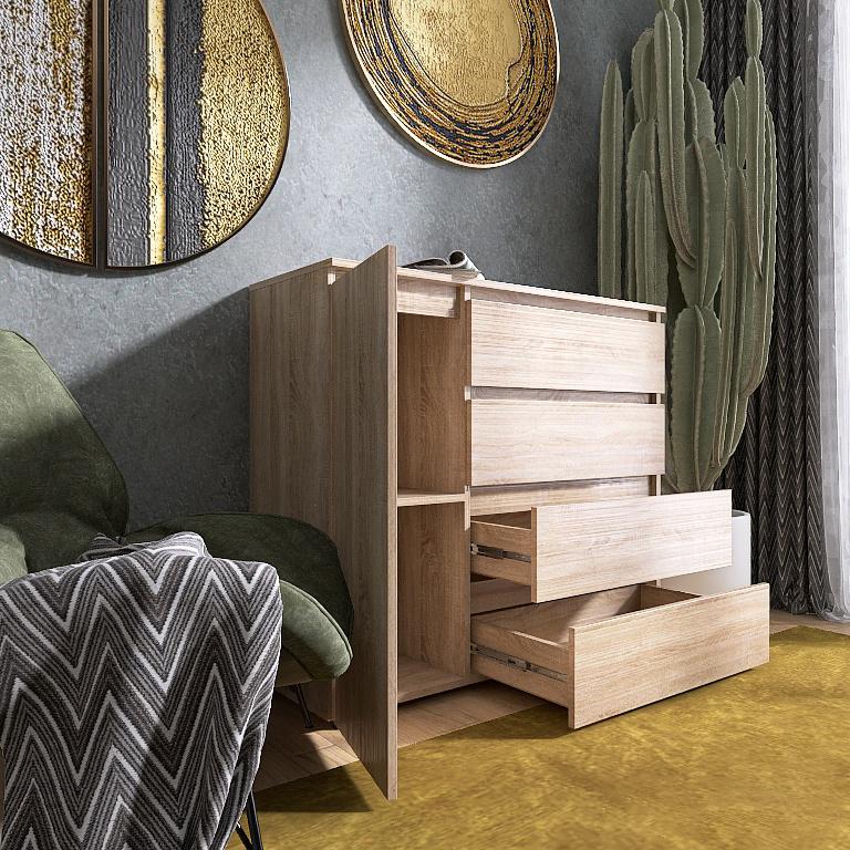 Этот компактный, но вместительный комод легко впишется в любой интерьер, будь то современный минимализм, классика или скандинавский стиль. Благодаря четким линиям и стильным фасадам он добавит нотки уюта и элегантности в вашу спальню, гостиную или прихожую.