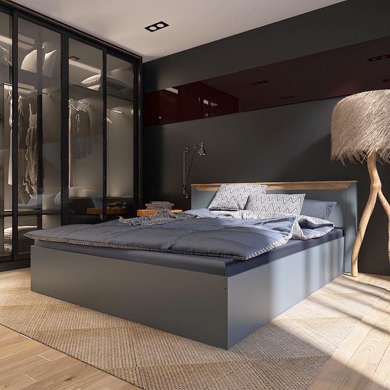 Кровать двухспальная EVEREST Нордик 1400 Дуб крафт золотой + Графит