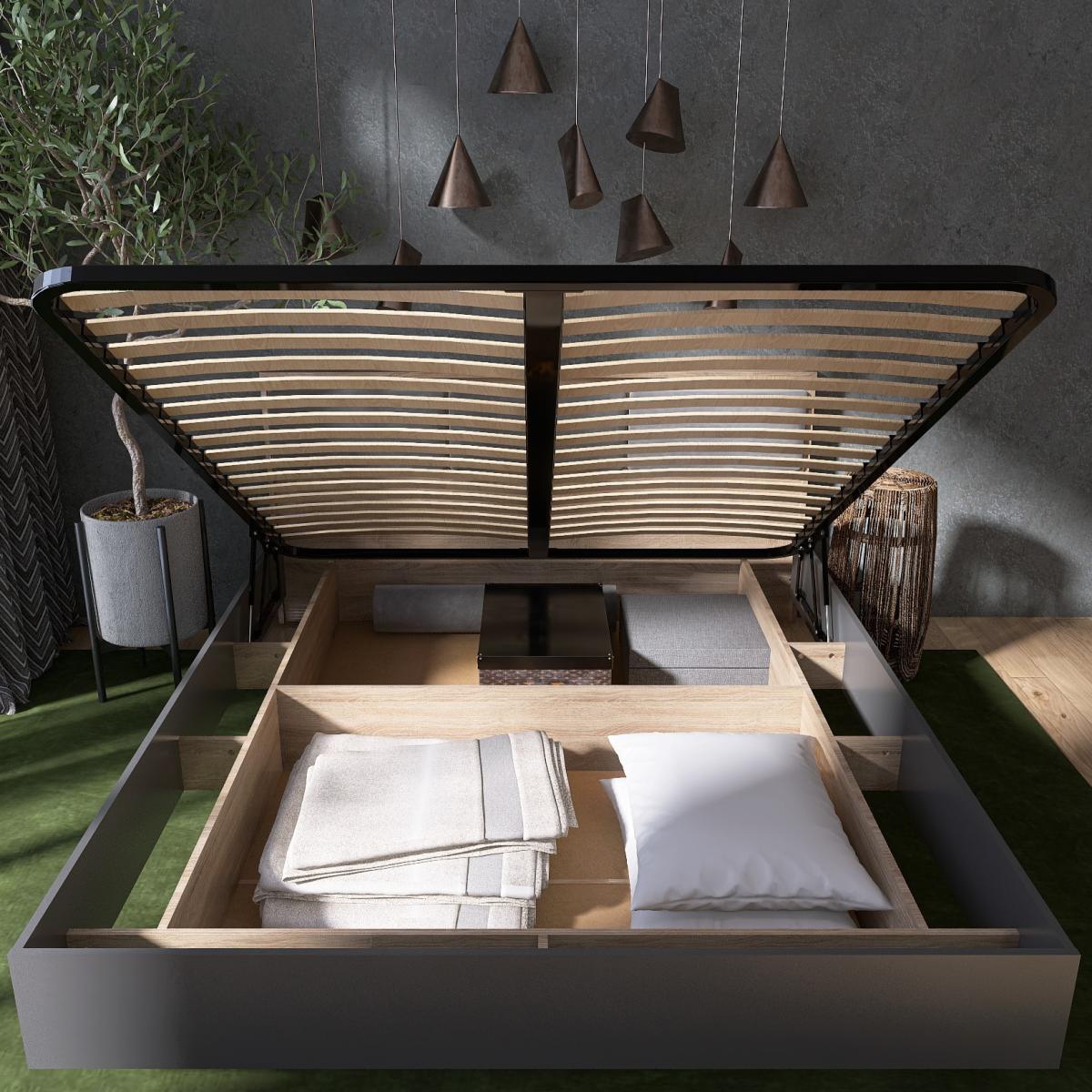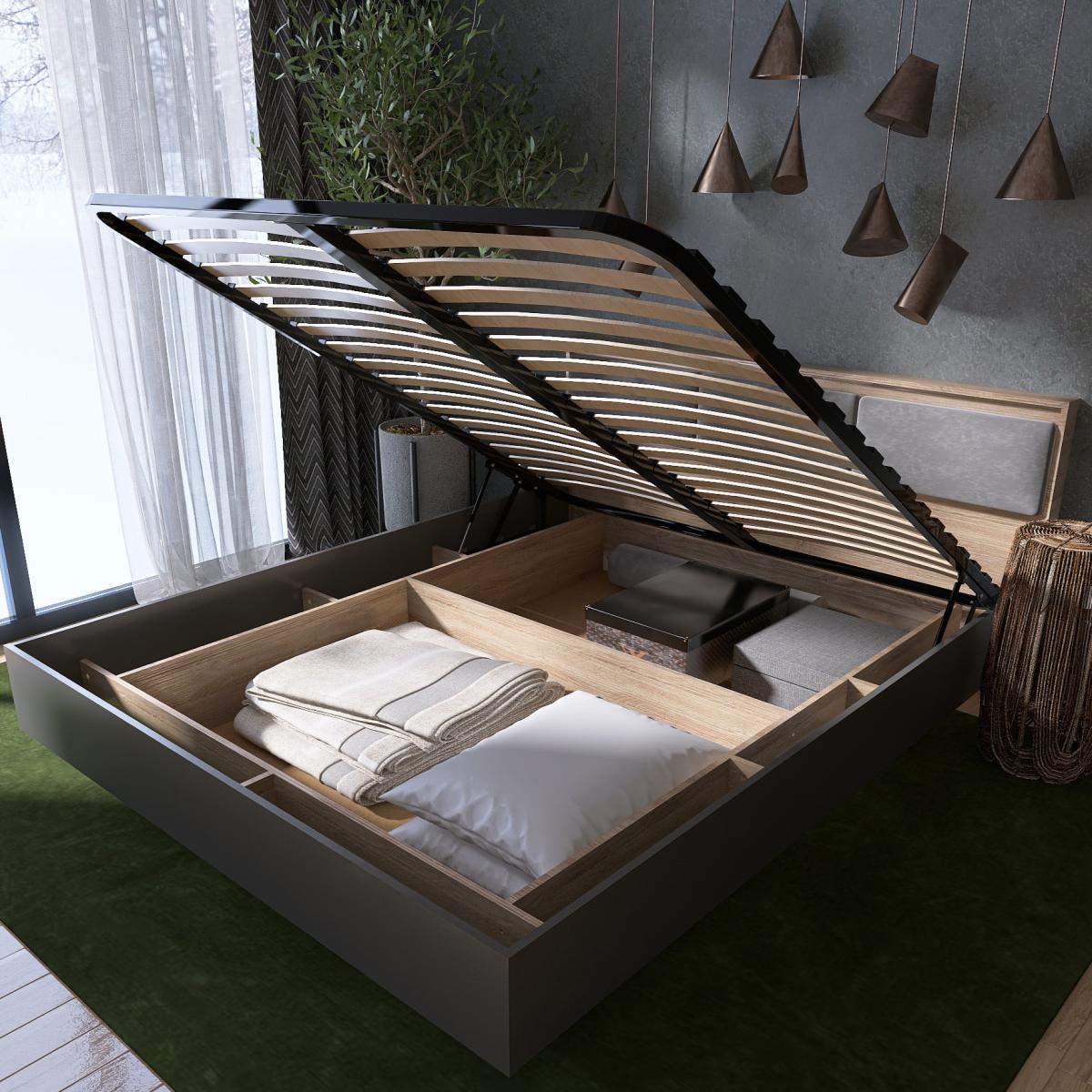 Кровать двуспальная EVEREST Cити 1600 с подъёмным механизмом и ламельным основанием Сонома + Графит