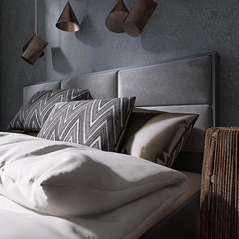 Изголовье кровати оснащено наполнителем из ППУ и обтянуто жаккардовой тканью, что делает его мягким и удобным для опоры.