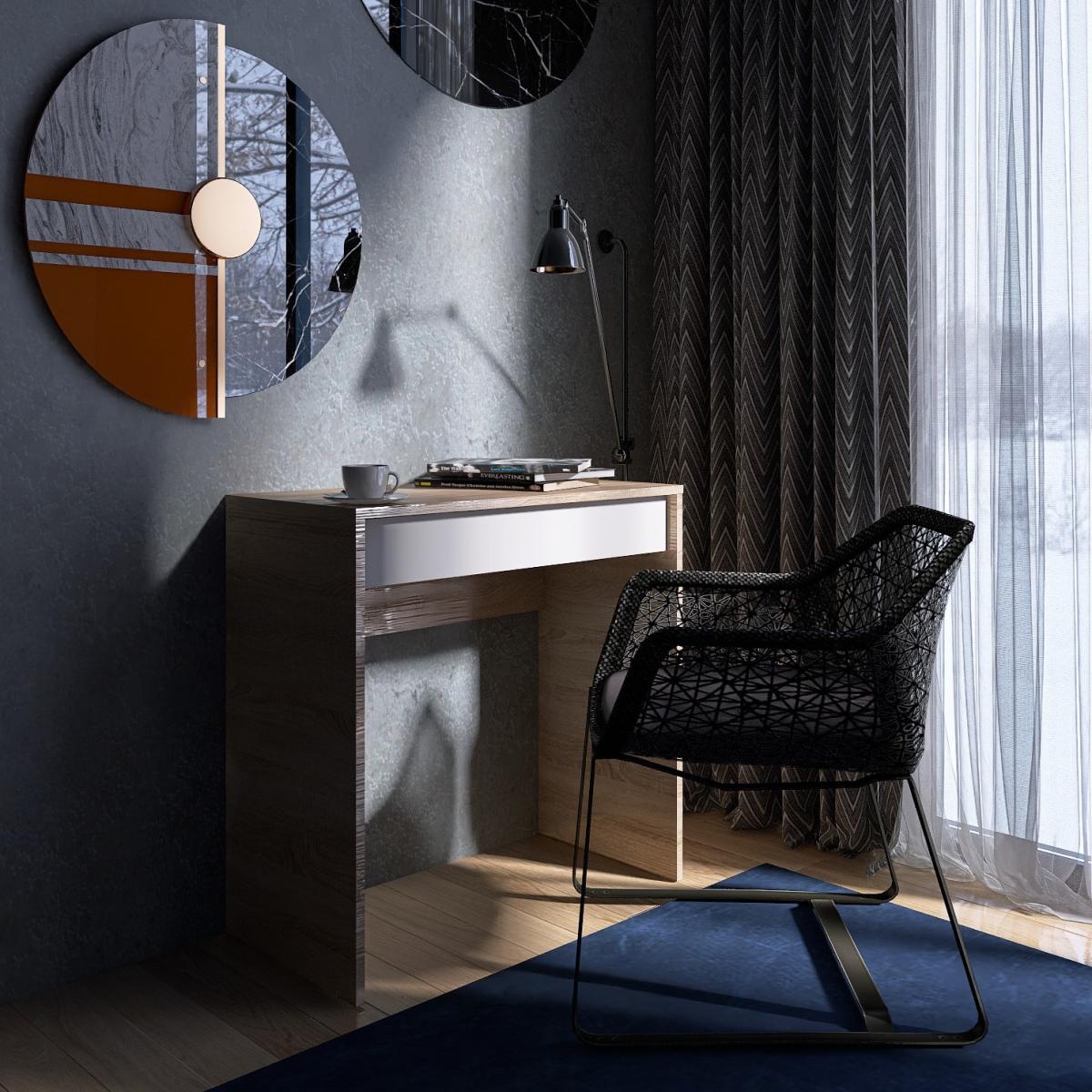 Мини-стол 750 EVEREST Сити — это компактное и стильное решение для организации рабочего пространства в небольших помещениях. Благодаря нейтральному сочетанию цвета "Сонома + Белый", модель гармонично вписывается в интерьер спальни, детской, гостиной или гостиничного номера. Один выдвижной ящик позволяет удобно хранить ноутбук, канцелярию или личные мелочи.