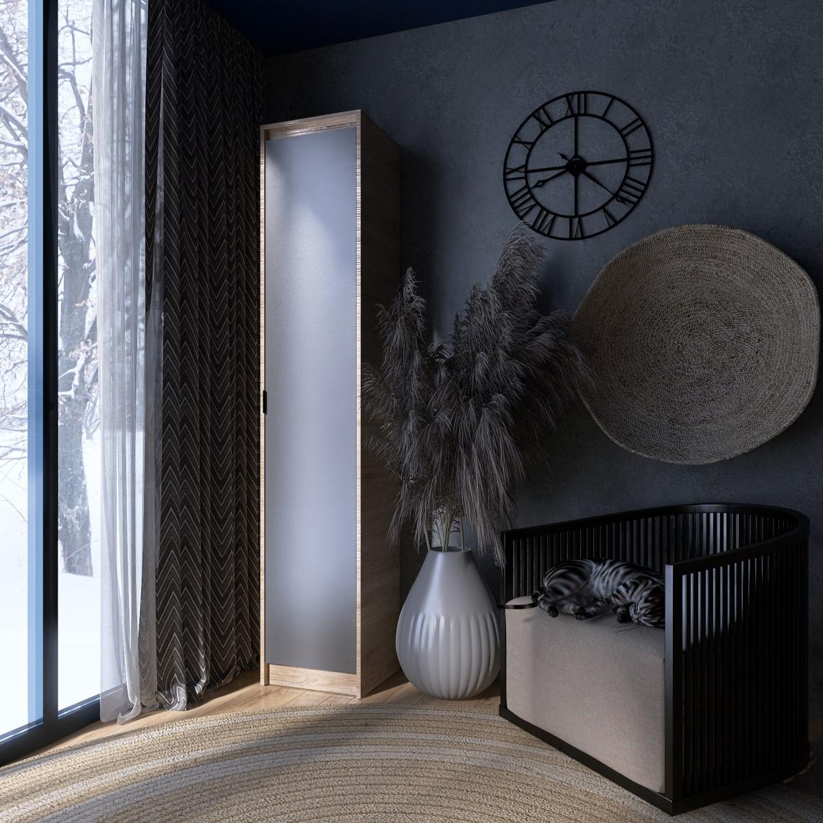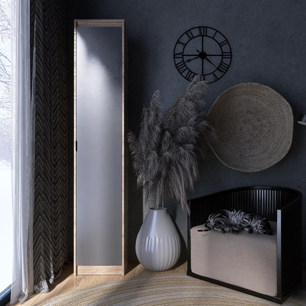 Пенал EVEREST Сити 400 — это узкий, но очень вместительный шкаф, который идеально подойдёт для хранения в спальне, гостиной, прихожей или домашнем кабинете. Элегантное сочетание оттенков Сонома + Графит делает модель универсальной и легко сочетаемой с другими элементами коллекции «Сити».