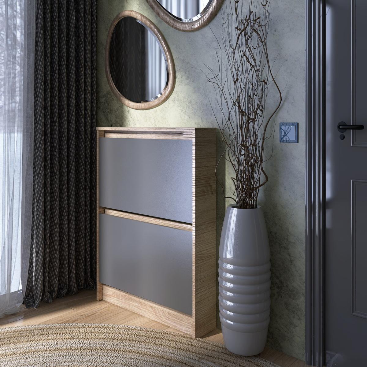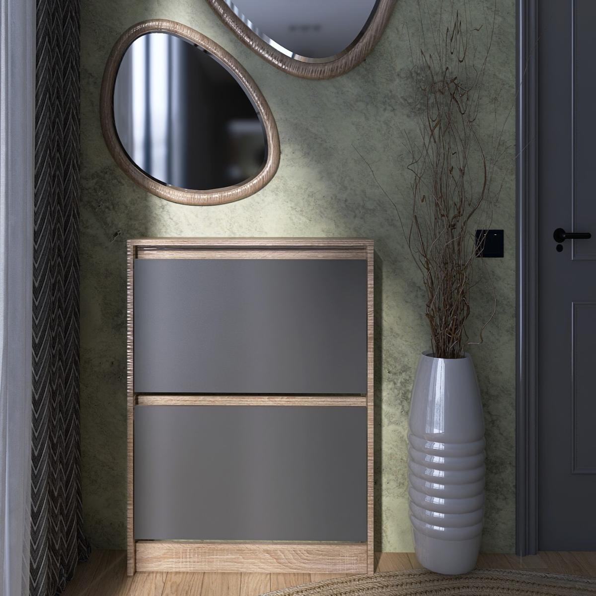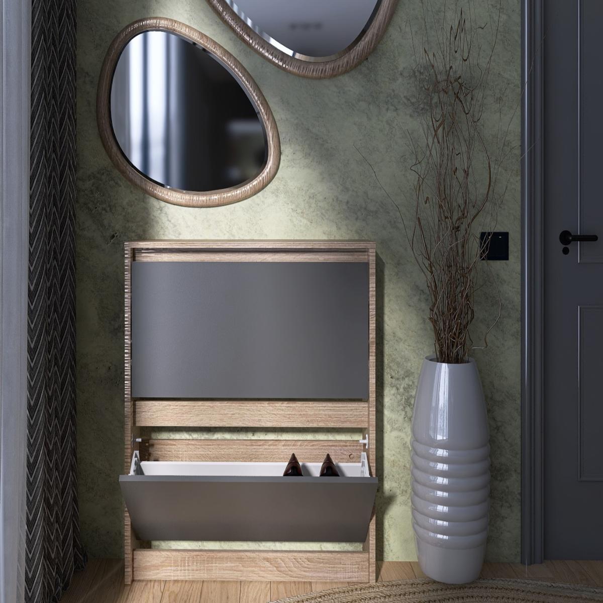Тумба для обуви EVEREST Сити 160-2 Сонома + Графит 702×160×958 мм — отличное решение для организации порядка и экономии пространства в вашем доме.