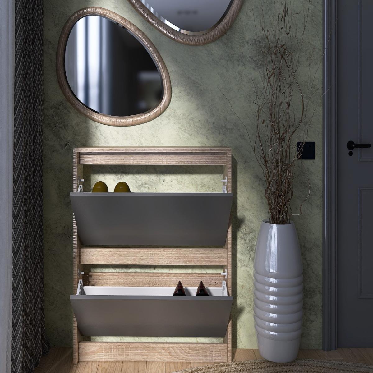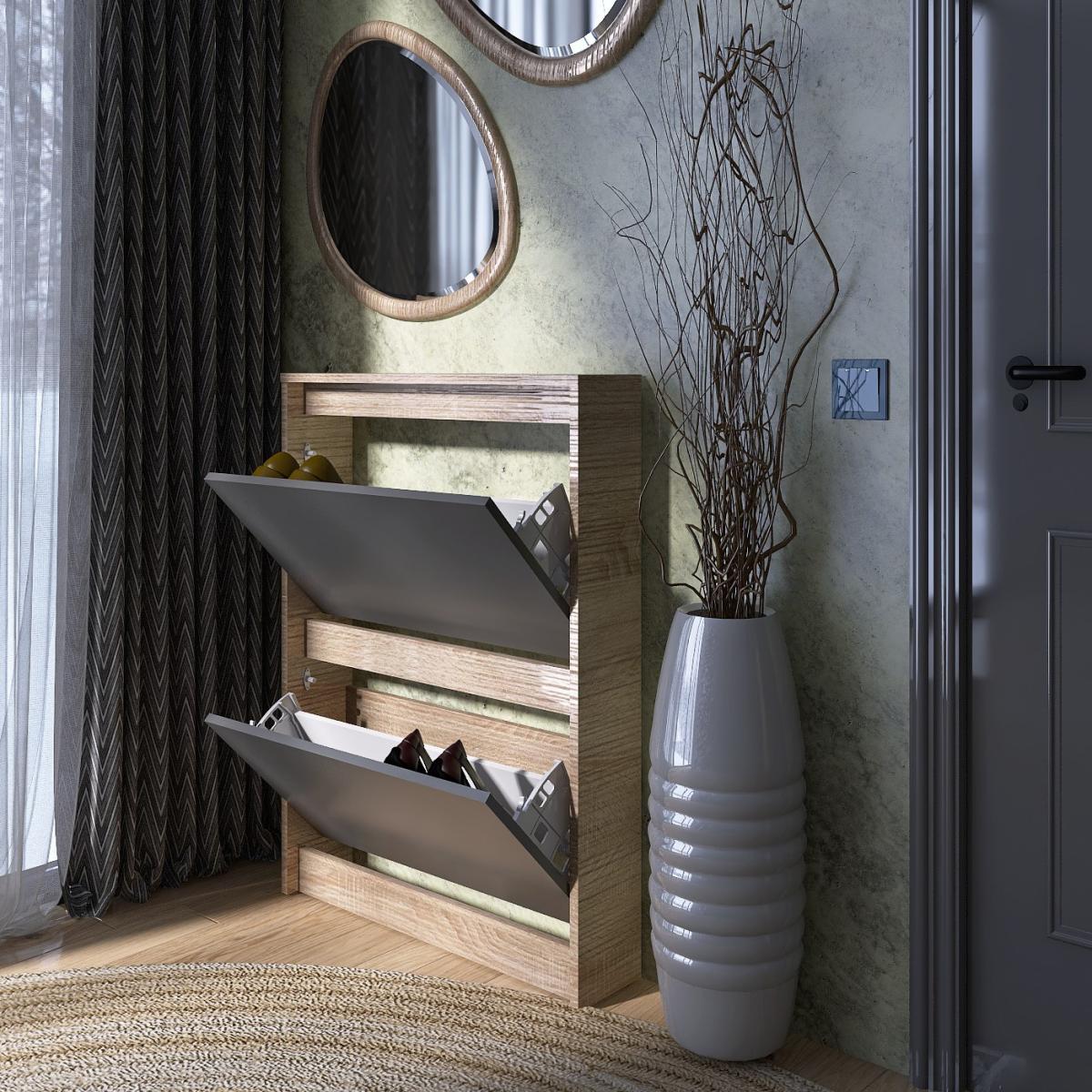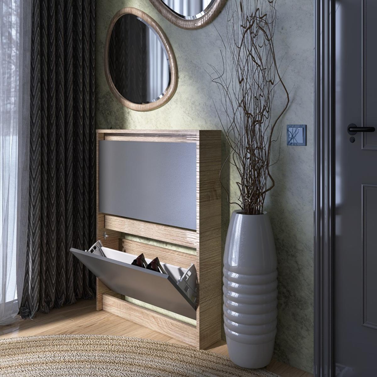 Тумба для обуви EVEREST Сити 160-2 Сонома + Графит 702×160×958 мм — отличное решение для организации порядка и экономии пространства в вашем доме.