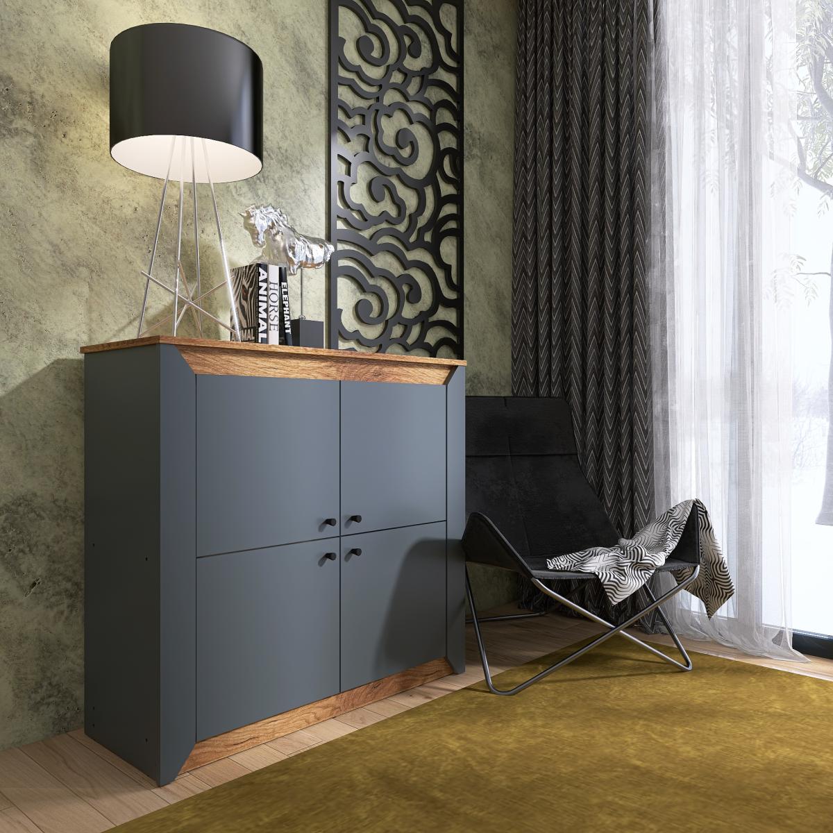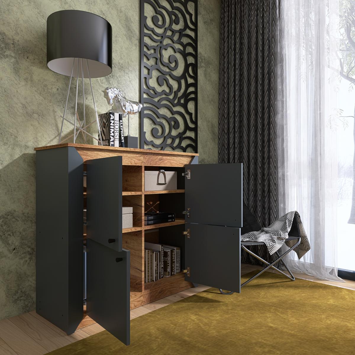 Тумба EVEREST Нордик с четырьмя дверями 980х378х923 мм Дуб крафт золотой + Графит