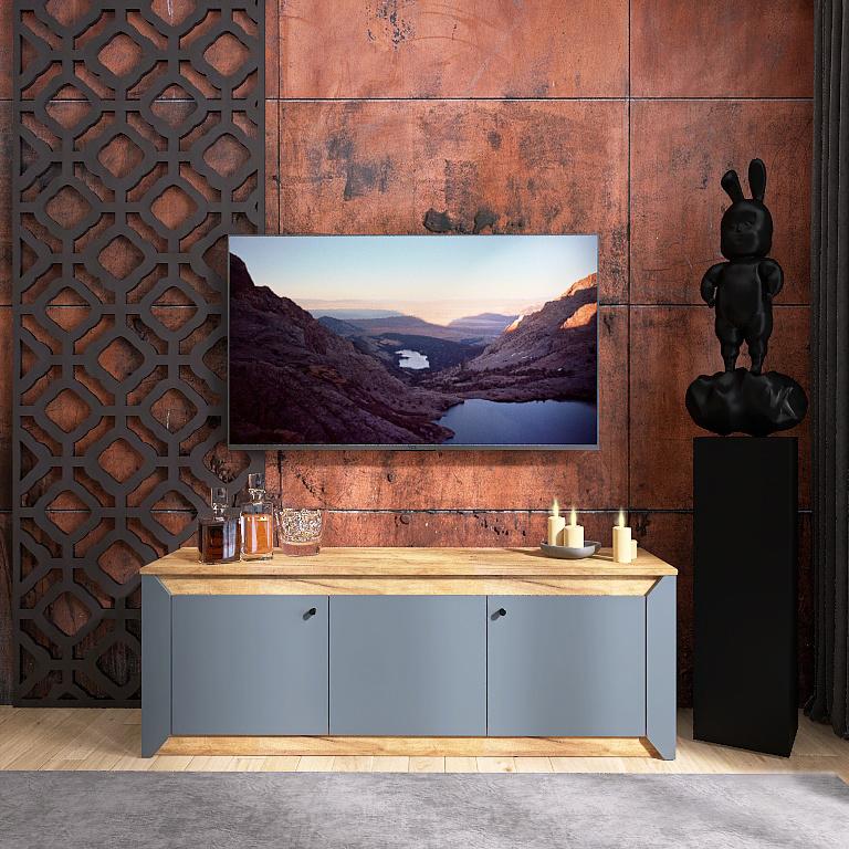 Тумба ТВ под телевизор EVEREST Нордик 1500х378х530 мм Дуб крафт золотой + Графит