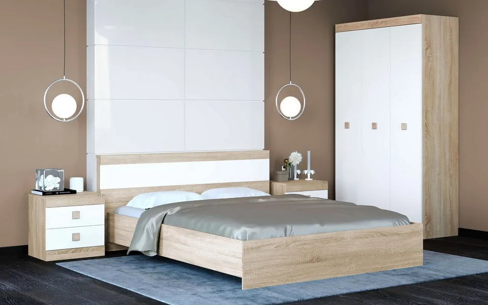 Ліжко двоспальне EVEREST Соната 1400 каркас Сонома + Білий