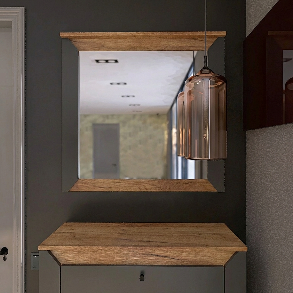 Сучасний стиль – поєднання благородного деревного відтінку Дуб Крафт Золотий та графіту робить дзеркало універсальним рішенням для будь-якого інтер’єру.
