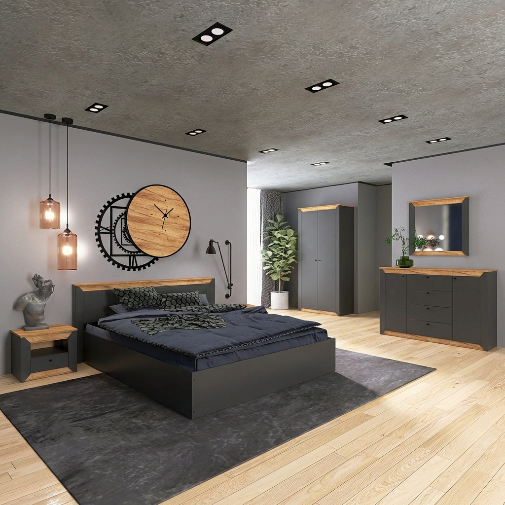Дуб Крафт Золотий + Графіт – стильне контрастне поєднання, що додає глибини простору.