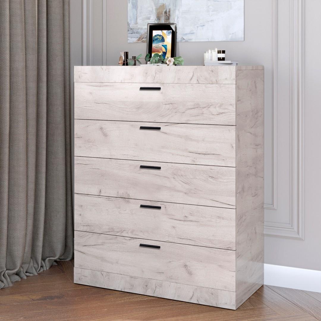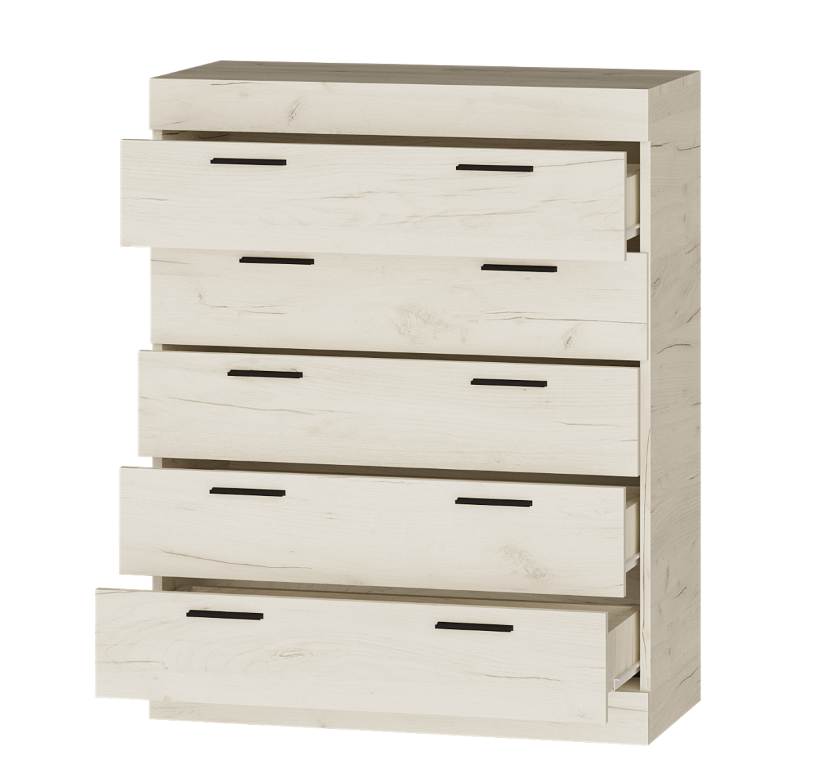 П’ять висувних шухляд забезпечують достатньо місця для зберігання одягу, білизни та інших речей.