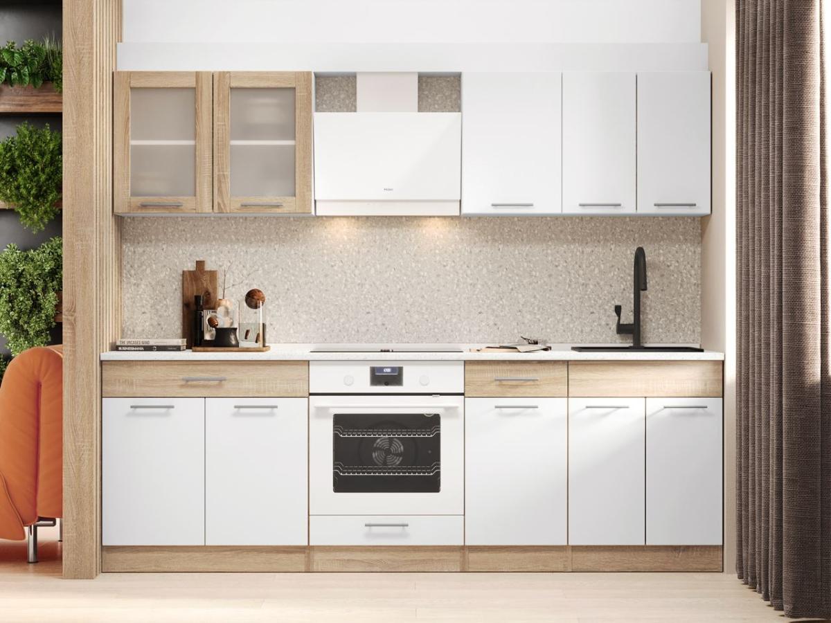 Модель добре поєднується з іншими модулями серії EVEREST Еко, формуючи функціональну та узгоджену кухонну композицію. Поєднання декорів Сонома+Альба+Сонома надає меблям сучасного, охайного вигляду, який легко вписується в різні інтер’єрні рішення.