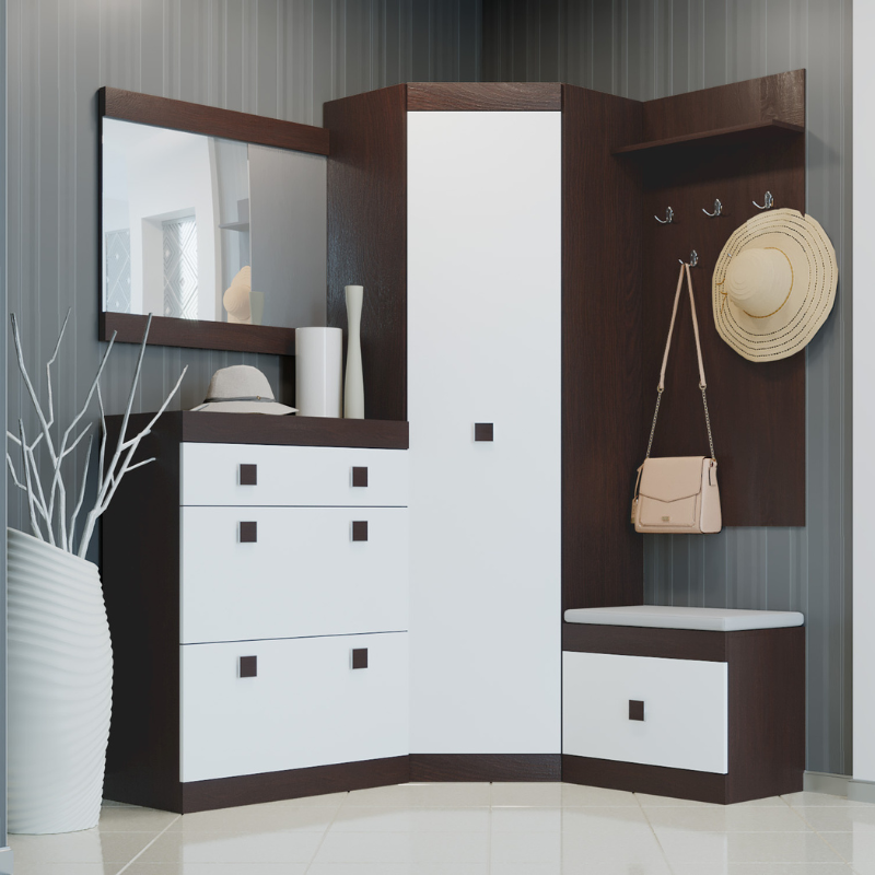 Кутова шафа EVEREST Соната 700 – це стильне й функціональне рішення для організації простору у передпокої, спальні або гардеробній. Компактні розміри дозволяють розмістити її навіть у невеликому приміщенні, а сучасний дизайн робить її універсальним елементом інтер’єру.
