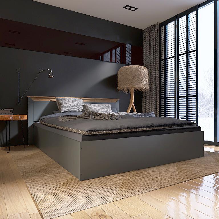 Ліжко двоспальне EVEREST Нордік 1400 Дуб Крафт Золотий + Графіт