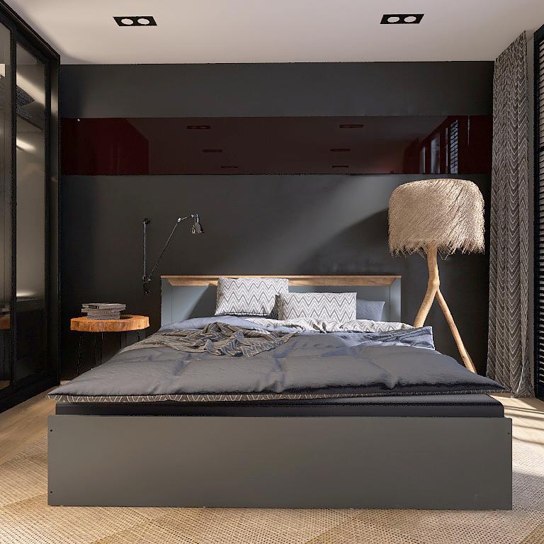 Ліжко двоспальне EVEREST Нордік каркас 1400 щит ДСП Дуб крафт золотий + Графіт