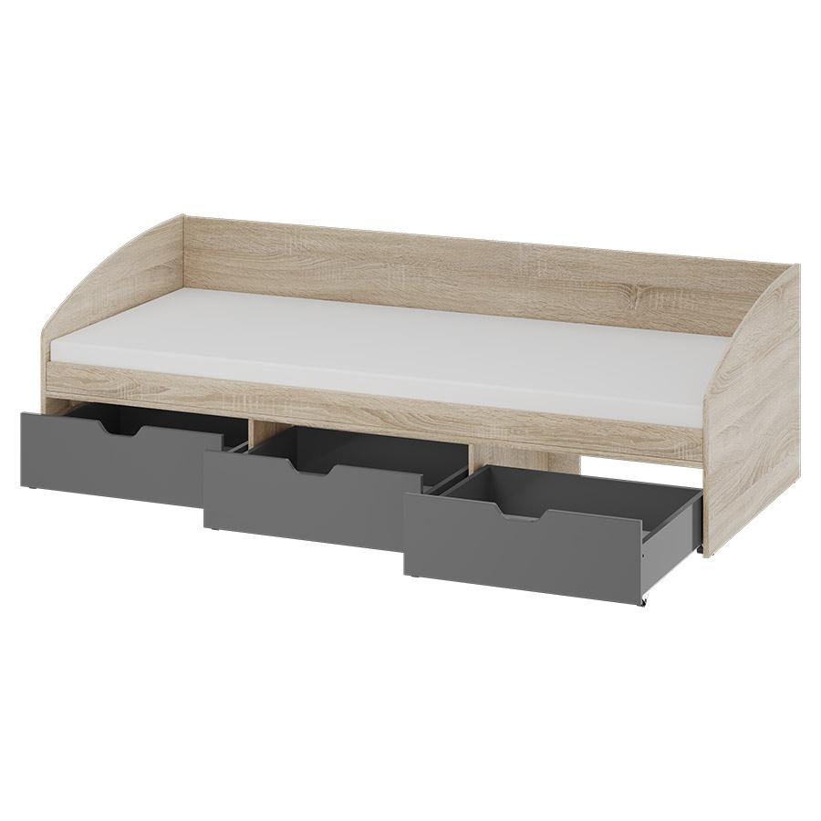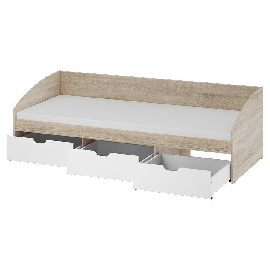 Ліжко розраховане під матрац розміром 800×1900 мм і оснащене захисною спинкою з боковими елементами, що забезпечують комфорт і безпеку під час сну та відпочинку. У комплект входять висувні ящики для зберігання, які за бажанням можна замовити в інших доступних кольорах.