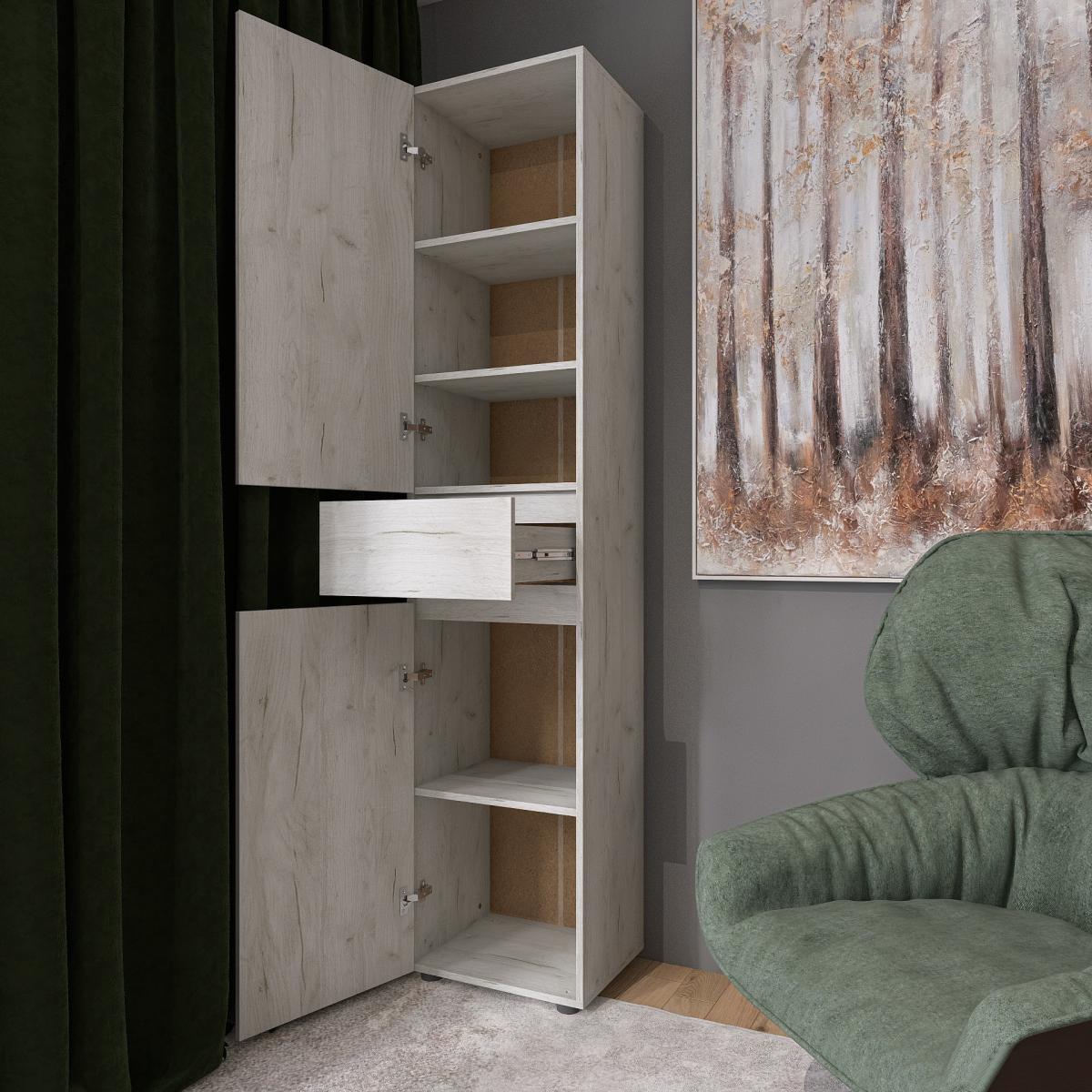 Лайт пенал ПЛ-1 Крафт Білий – це сучасний і зручний елемент меблів, який ідеально впишеться в інтер'єр спальні, вітальні, дитячої кімнати або офісу. Завдяки продуманій конструкції та універсальному дизайну він допомагає ефективно організувати простір, забезпечуючи зручне зберігання речей.