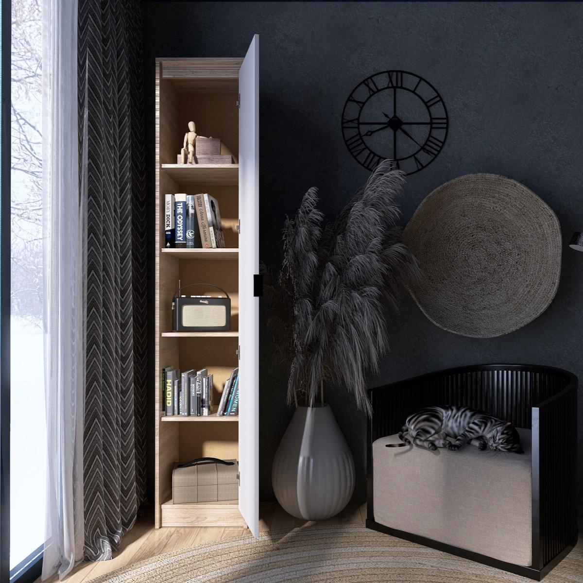 Пенал EVEREST Сіті 400 — це вузька, але дуже містка шафа, яка ідеально підійде для організації простору в спальні, вітальні, передпокої або навіть у домашньому офісі. Стильне поєднання кольорів Сонома + Білий робить пенал універсальним і легким для поєднання з іншими меблями колекції.