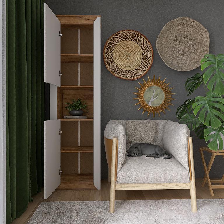 Цей пенал складається з двох закритих дверцят з полицями і однією відкритою полицею, що ідеально підходить для зберігання речей або декору. Він надає можливість зручно організувати простір, а стильний зовнішній вигляд створить гармонію у вашому інтер'єрі.
