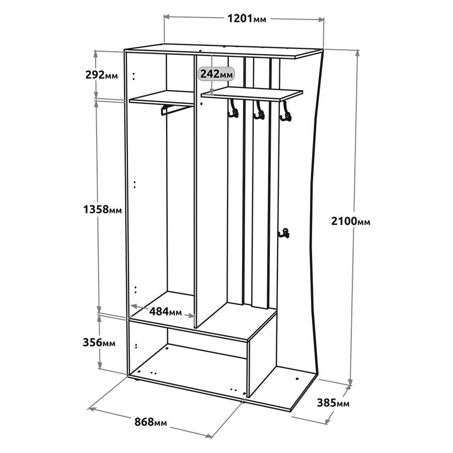 Габаритні розміри (Ш×Г×В): 1201×385×2100 мм