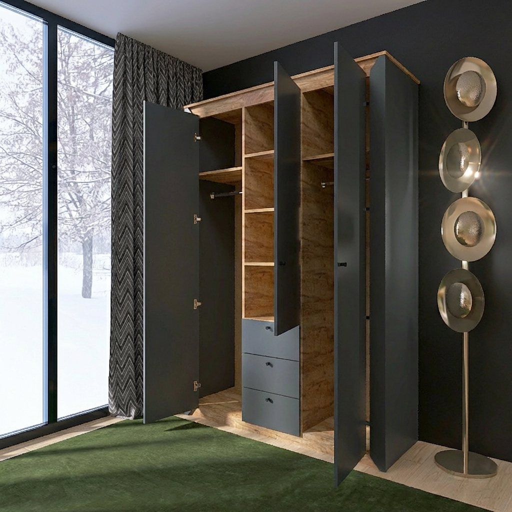 Шафа EVEREST Нордік 1400x498x2050 мм Дуб Крафт Золотий + Графіт