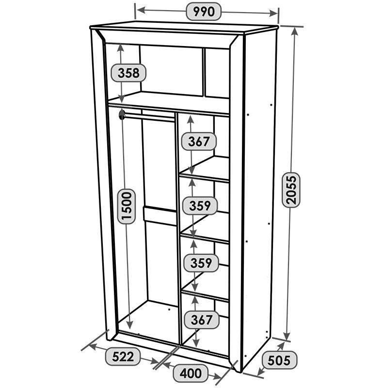 Шафа 990 мм з колекції Нордік – це компактне, але містке рішення для зберігання одягу, взуття й аксесуарів. Сучасний дизайн, функціональна організація внутрішнього простору та якісні матеріали роблять її чудовим вибором для спальні, передпокою або гардеробної.