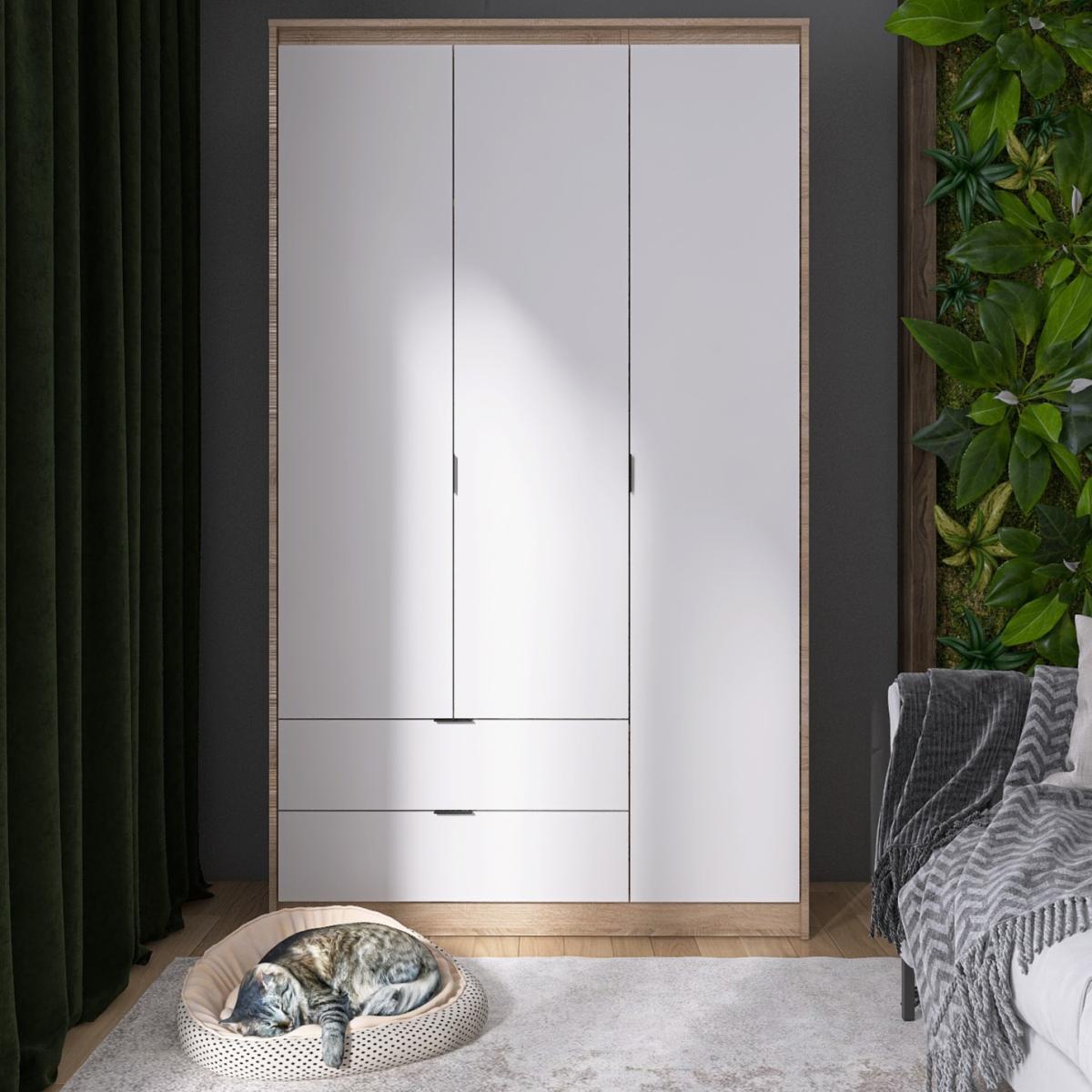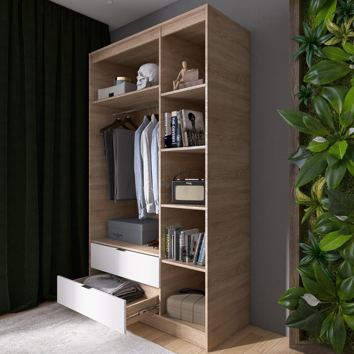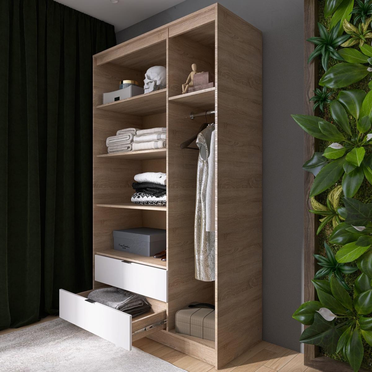 Шафа EVEREST Сіті 1200 Сонома + Білий 1202×500×2046 мм — це ідеальне поєднання стилю, функціональності і практичності для вашого дому.