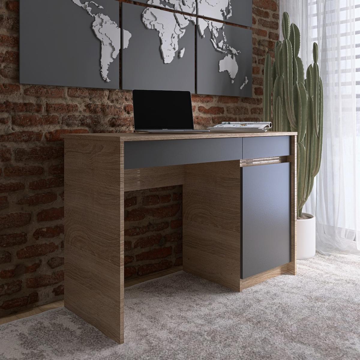 Стіл 1100 EVEREST Сіті — це практичне та сучасне рішення для організації робочого або навчального місця вдома. Модель вирізняється лаконічним дизайном, поєднанням кольорів "Сонома + Графит" і функціональністю. Завдяки компактним розмірам і додатковим системам зберігання стіл підходить як для підлітка, так і для дорослого.