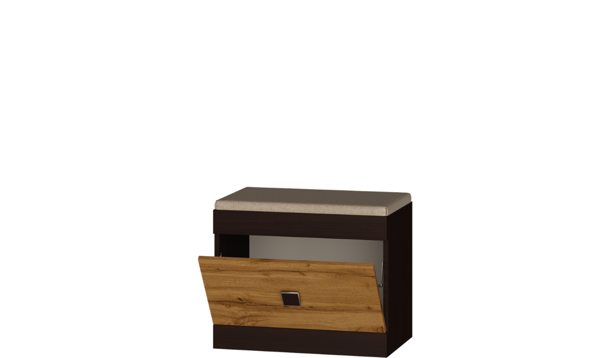 Тумба для взуття Соната 600 у кольорі венге темний + білий – це зручне та функціональне рішення для зберігання взуття в передпокої. Мінімалістичний дизайн і компактні розміри дозволяють використовувати її навіть у невеликих приміщеннях. Виготовлена з якісного ЛДСП та оснащена м’яким сидінням, яке робить процес перевзування комфортнішим.
