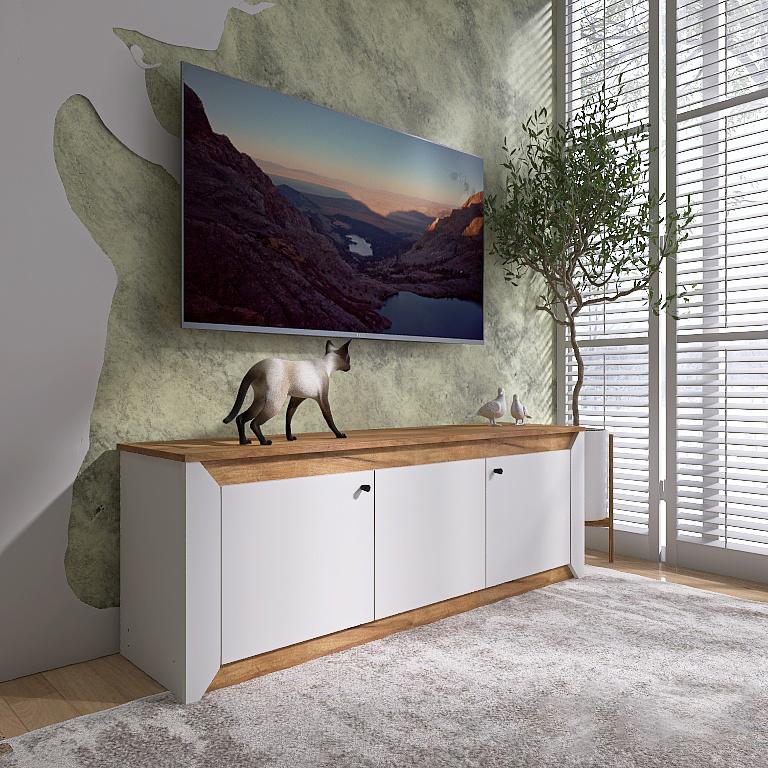 Тумба ТВ під телевізор EVEREST Нордік 1500x378x530 мм Дуб Крафт Золотий + Білий