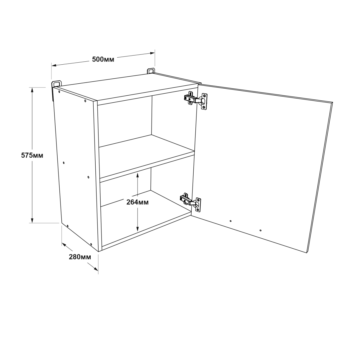 Завдяки розмірам 500×575×280 мм шафа легко розміщується над робочою зоною кухні та допомагає раціонально використовувати простір.