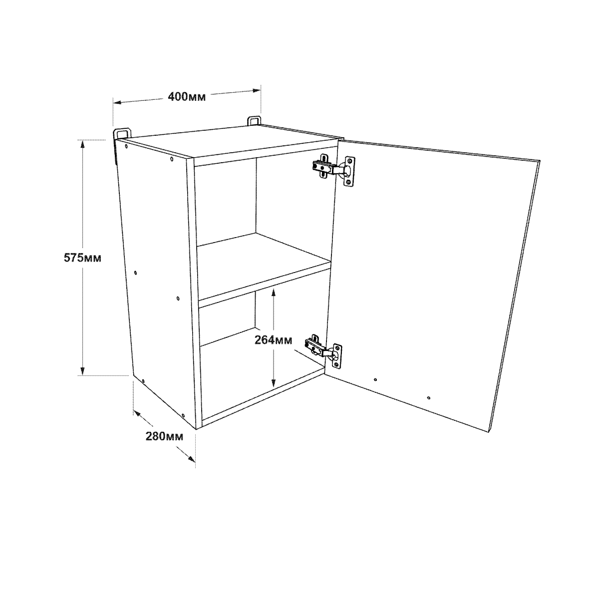 Невеликі розміри 400×575×280 мм дозволяють легко розмістити шафу навіть у обмеженому просторі кухні та ефективно використати верхню частину гарнітура.